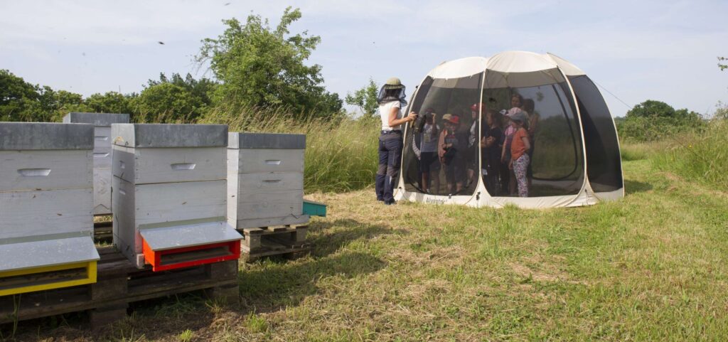 Des jeux pédagogiques (développés par Apicompost) et des ateliers autour du monde fascinant des abeilles, du rôle des pollinisateurs et de la biodiversité viennent compléter la visite.