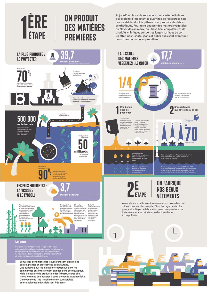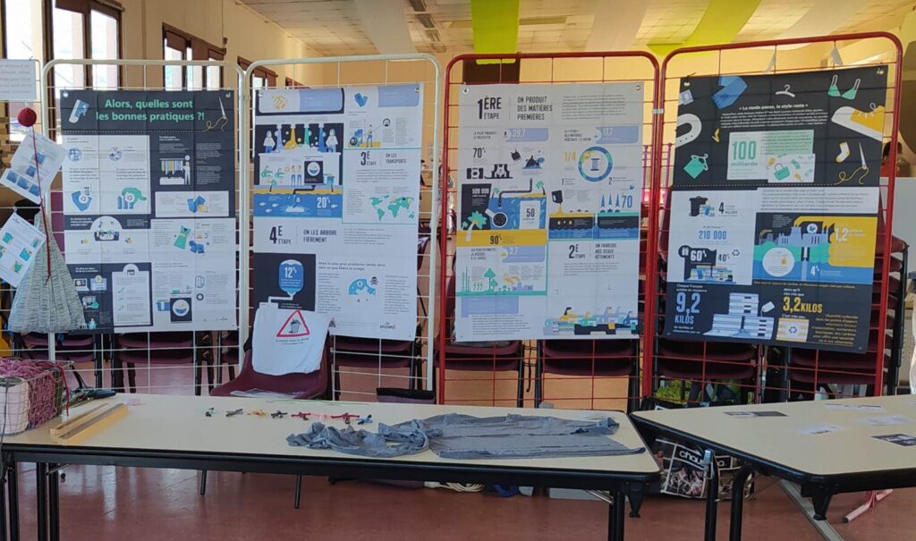Les stands et ateliers sont accompagnés de panneaux explicatifs sur les impacts du textile. Ces panneaux décrivent les étapes de fabrication de nos vêtements, les pollutions associées, les impacts sociaux.. Sont notés également, de précieux conseils pour adopter de bonnes pratiques !